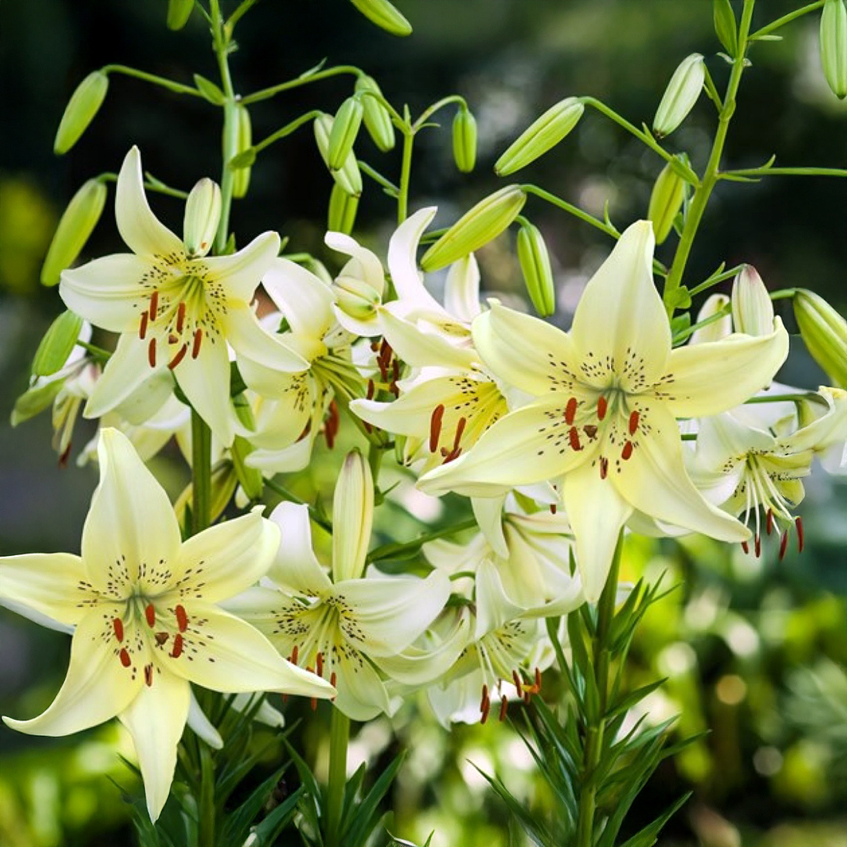 El Lilium ‘Sweet Surrender’ es una variedad delicada y elegante, reconocida por sus flores blancas con suaves matices rosados y un centro amarillo pálido, que aportan luz y sofisticación al jardín. Sus tallos firmes alcanzan entre 80 y 120 cm de altura, ideales para borduras, macizos y arreglos florales de gran impacto visual.
