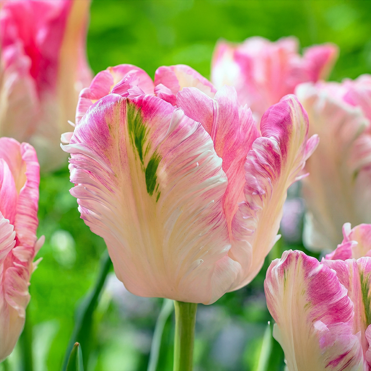 El tulipán Cabanna es una variedad ornamental elegante y delicada, reconocida por su coloración degradada. Sus pétalos presentan un rosa más intenso en los extremos, que se aclara suavemente hacia el centro, creando un efecto luminoso y armonioso. Florece en primavera en Uruguay y se adapta muy bien a jardines, canteros y macetas. Su aspecto refinado lo convierte en una excelente opción tanto para espacios verdes como para arreglos florales, aportando suavidad, color y estilo natural.